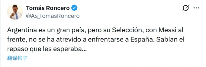 九游游戏-龙赛罗:梅西领衔的阿根廷不敢与西班牙较量,他们清楚将面临什么 频道:意甲 日期:2026-03-21 浏览:49 03月15日讯 知名皇马球迷,阿斯报主编龙赛罗发布社媒,对欧美杯取消一事表达了自己的看法。龙赛罗在社媒写道:阿根廷是个伟大的国家,但由梅西领衔的阿根廷国家队,却不敢直面西班牙。他们知道等待他们的将是什么... 上一篇:九游助手-从0比7惨败到0比5告负 国安青年军真的进步了吗? 下一篇:九游助手-阿兰珍惜为国效力机会:国家待我特别好 我很自豪 相关文章 九游下载-库里本赛季命中184记三分,那哈登、杜兰特、詹姆斯呢?|斯蒂芬·库里|詹姆斯·哈登|凯文·杜兰特|伦纳德|投篮_新浪体育_新浪新闻 九游app下载-林良锋:不列颠内斗在即,说说苏格兰又是什么鬼 九游助手-阿兰珍惜为国效力机会:国家待我特别好 我很自豪 九游游戏-龙赛罗:梅西领衔的阿根廷不敢与西班牙较量,他们清楚将面临什么